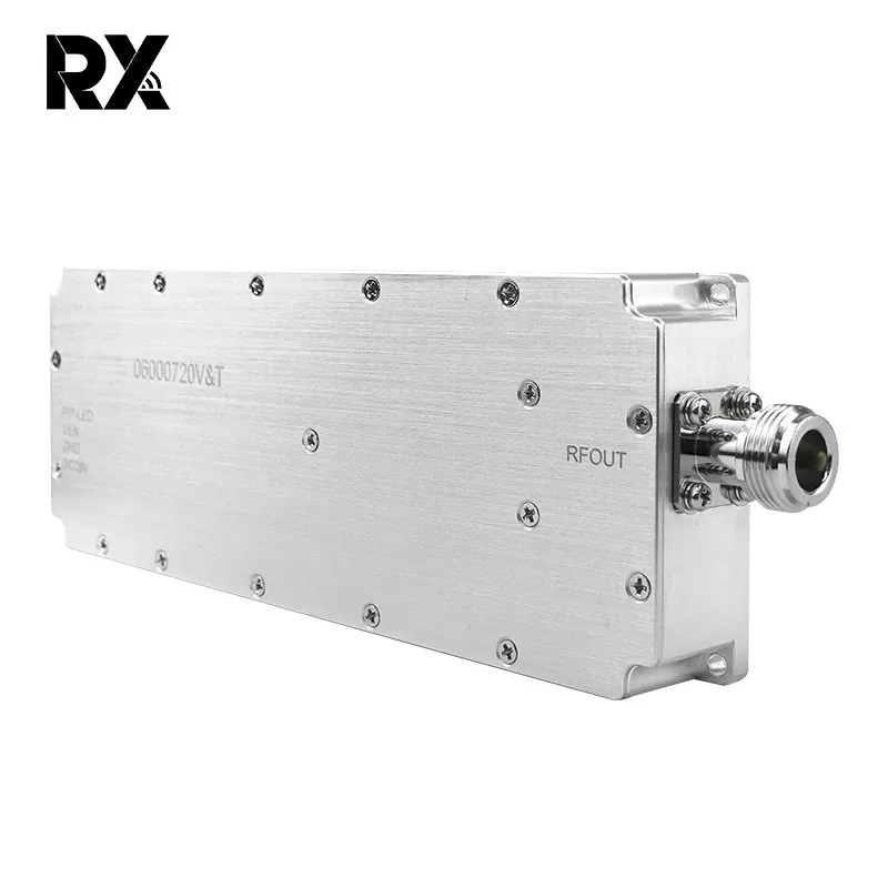 Бұл өнім 100w сандық сигналдық сигналдық күшейткіш модулі - рингті қорғау функциясы бар ган технологиясына негізделген модуль. Ол сандық бастапқы сигналдарды тиімді күшейтеді және жоғары сигнал беру және тұрақтылықты қажет ететін коммуникациялар мен радарлар сияқты жүйелер үшін жарамды. GAN 100W сандық көзі сигналдық сигналдық күшейткіш модулі шеңберді қорғаумен модуль сигнал күшін тиімді арттырады және берілу кезінде сигналдардың сапасы мен сенімділігін қамтамасыз етуі мүмкін. Біздің модульдер өнімнің жиілік диапазонын теңшей алады, RX шығарған модульдердің сапасы кепілдендірілген және олардың керемет өнімділігі және жақсы пайдалану нәтижелері оларды тұтынушылармен танымал етеді.